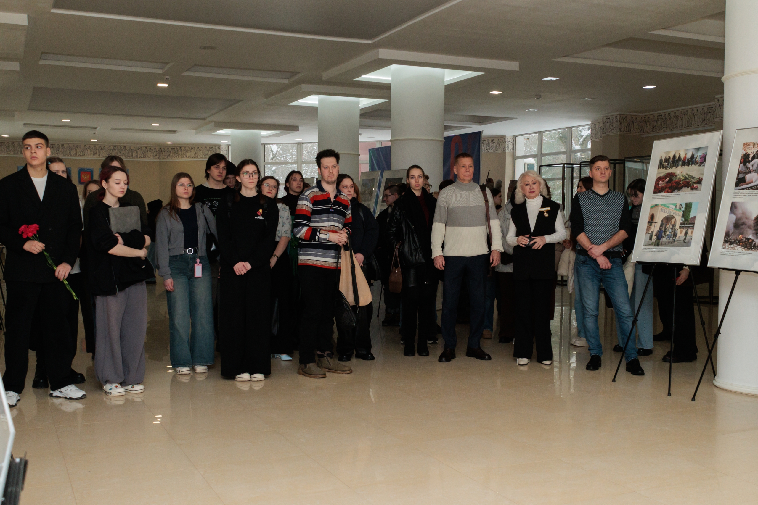 19 февраля в холле второго корпуса Московского государственного института культуры состоялось торжественное открытие фотовыставки «Терроризм — угроза цивилизации». Мероприятие организовано комиссией по общественной безопасности и народной дипломатии Совета по делам национальностей при Правительстве Москвы, комиссией по общественной поддержке СВО национальными объединениями и землячествами при Правительстве Москвы, а также Ассоциацией предпринимательских сообществ «Объединенный центр делового сотрудничества ШОС» при поддержке Департамента национальной политики и межрегиональных связей города Москвы.